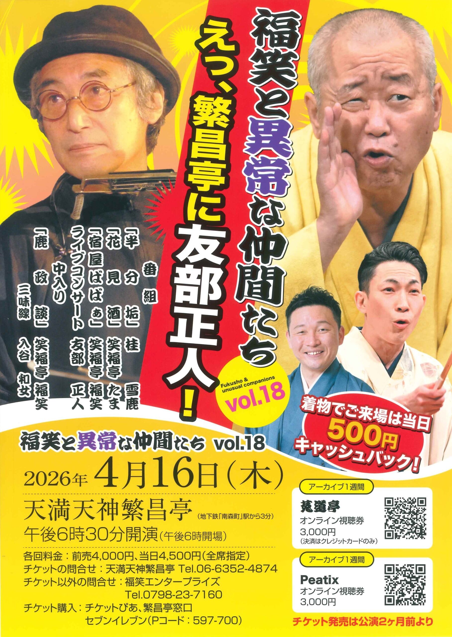 福笑と異常な仲間たち vol.18 ~えっ、繁昌亭に友部正人!~